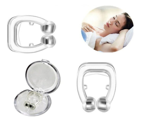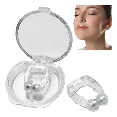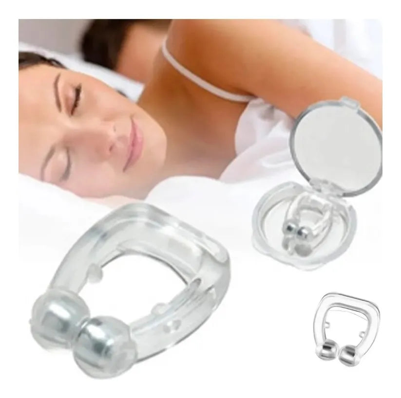 Con Clip anti ronquidos biomagnético, este novedoso invento se acabó el sufrir el estruendo sonido del ronquido de tu pareja. LosClips anti ronquidos biomagnéticos llevan imanes en su interior que ayudan a evitar los ronquidos. Este viene servido en un pequeño estuche. Es muy cómodo de llevar, en unos segundos se dará cuenta de la mejora en la respiración.